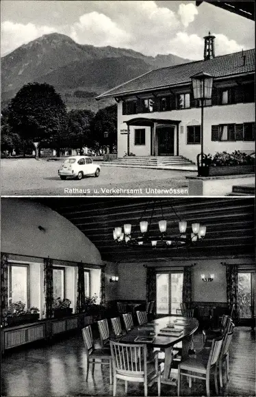 Ak Unterwössen in Oberbayern, Rathaus, Verkehrsamt