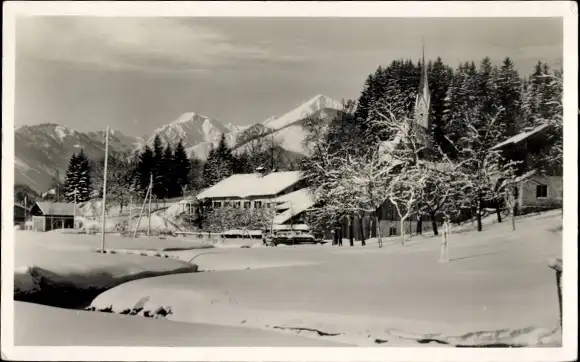 Ak Unterwössen in Oberbayern, Teilansicht, Winter