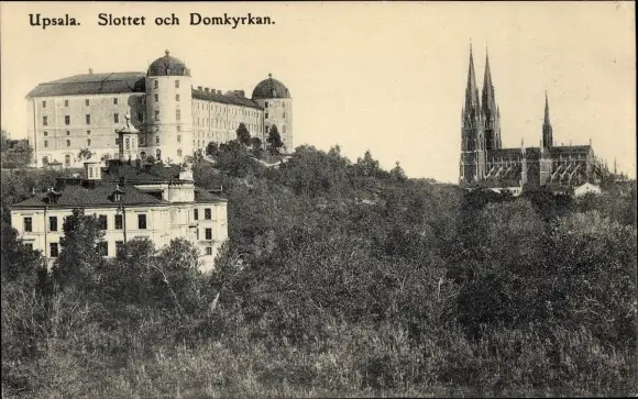 Ak Upsala Uppsala Schweden, Slottet och Domkyrkan