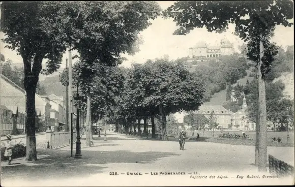 Ak Uriage les Bains Isère, vue générale des Promenades