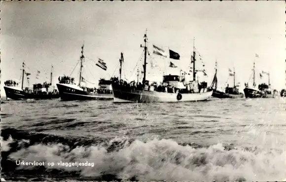 Ak Urk Flevoland Niederlande, Ukervloot am Flaggentag