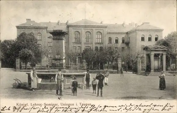 Ak Usingen im Taunus Hessen, Königliches Lehrer-Seminar, Brunnen