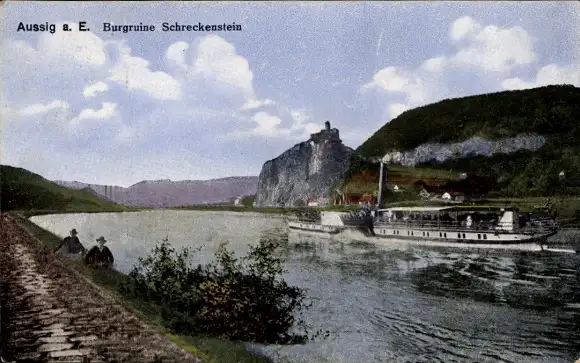Ak Ústí nad Labem Aussig Elbe Stadt, Burgruine Schreckenstein, Elbdampfer