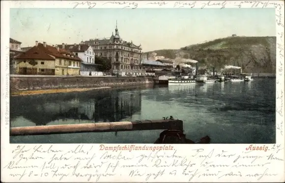 Ak Ústí nad Labem Aussig Elbe Stadt, Dampfschifflandungsplatz