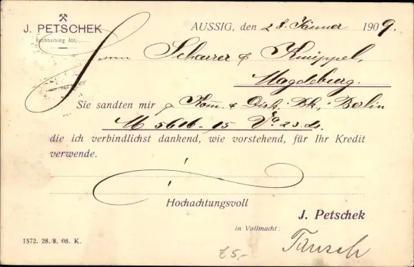 Ak Ústí nad Labem Aussig Elbe Stadt, J Petschek Buchhaltung Abt.