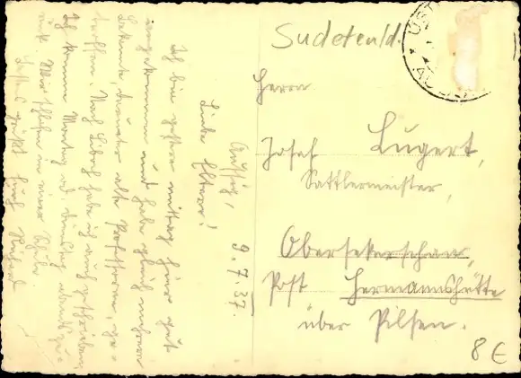 Zustand, siehe Scan, gelaufen, 1937 - ca 14 cm X 10 cm
