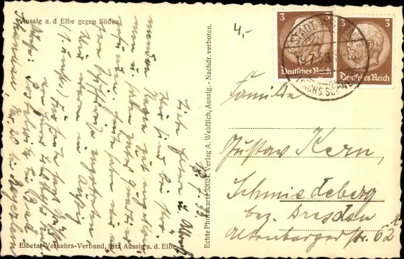 Ansichtskarte, Postkarte, Aussig, Ústí nad Labem