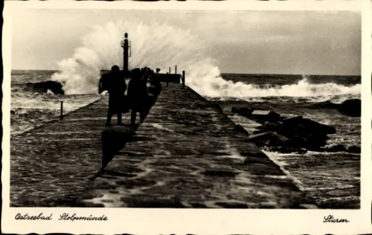 Ak Ustka Stolpmünde Pommern, Sturmflut, Mole