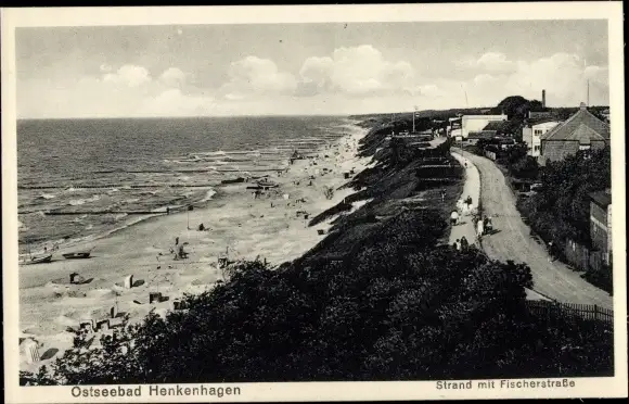 Ak Ustronie Morskie Henkenhagen Pommern, Strand, Fischerstraße