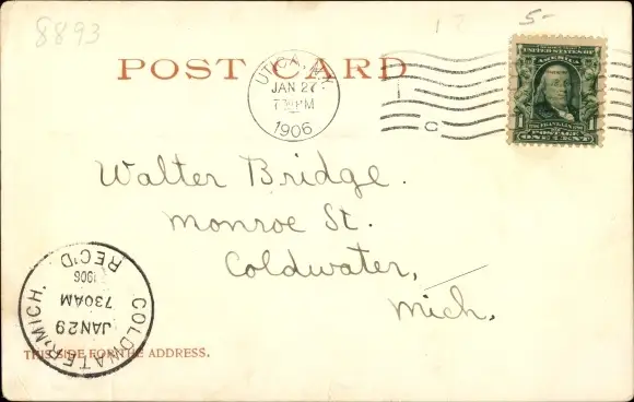 Zustand, siehe Scan, gelaufen, 1906 - ca 14 cm X 9 cm