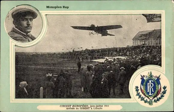 Ak Utrecht, European Circuit 1911, Ankunft von Gibert, Monoplan Rep