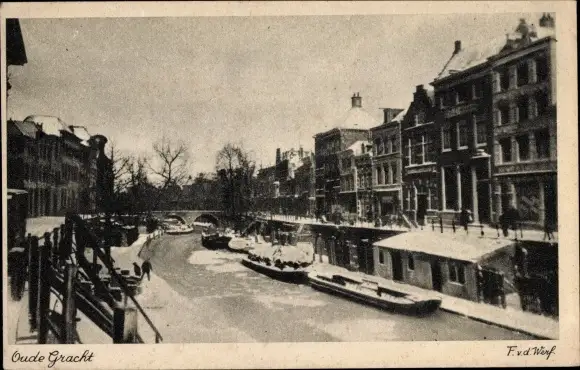 Ak Utrecht Niederlande, Oude Gracht, Winter