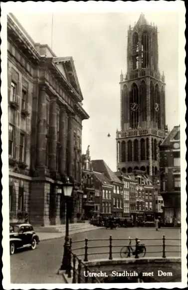 Ak Utrecht Niederlande, Stadhuis met Dom