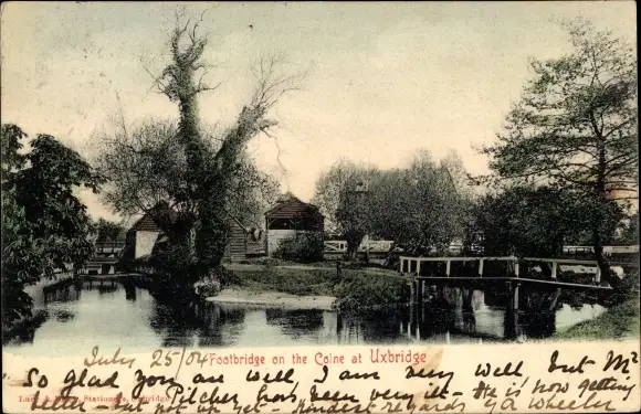 Ak Uxbridge Greater London, Footbridge on the Colne