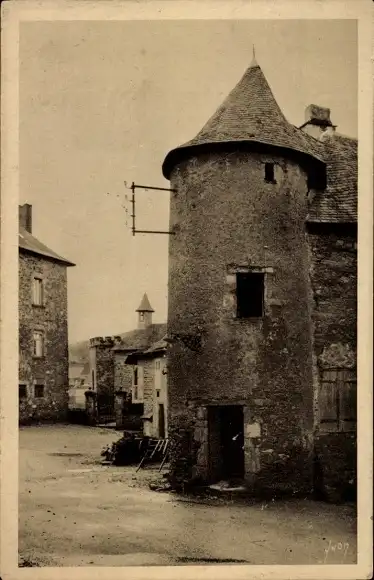 Ak Uzerche Corrèze, Tour du Prince noir, La Chapelle, place Notre Dame