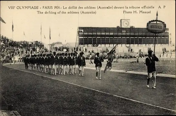 Ak VIII. Olympiade Paris 1924, Defilé des athletes, Australie, tribune officielle