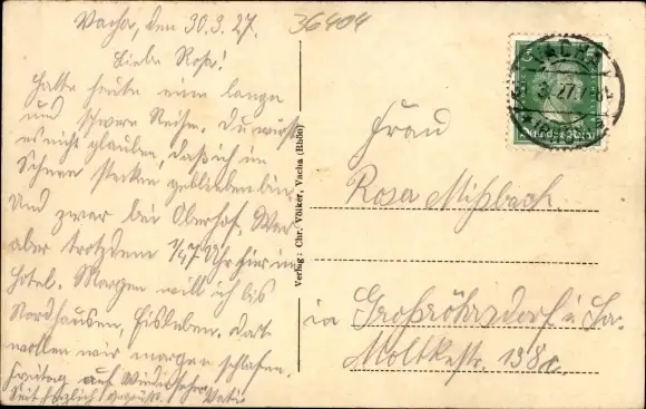 Zustand, siehe Scan, gelaufen, 1927 - ca 14 cm X 9 cm