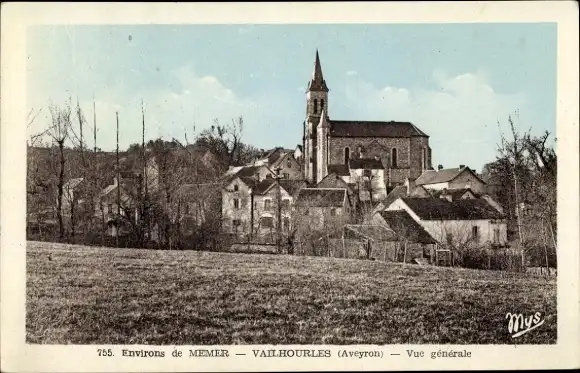 Ak Vailhourles Aveyron, Teilansicht, Kirche