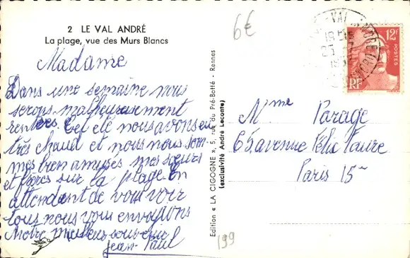 Ak Val André Côtes d’Armor, plage, vue des Murs Blancs