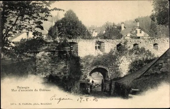 Ak Valangin Kanton Neuenburg, Mur d'enceinte du Château