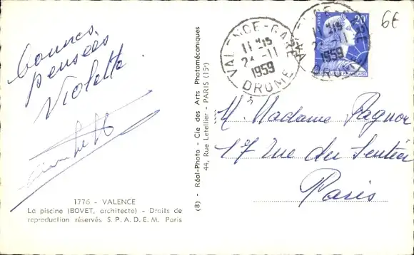 Zustand, siehe Scan, gelaufen, 1959 - ca 14 cm X 9 cm