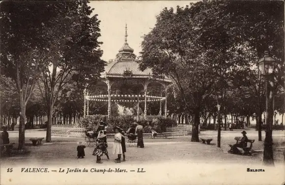 Ak Valence Drôme, Le Jardin du Champ-de-Mars