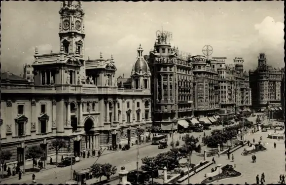 Ak Valencia Stadt Spanien, Plaza del Caudillo