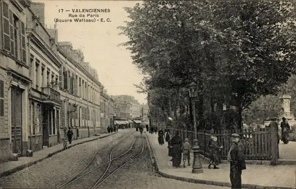 Ak Valenciannes Nord, Rue de Paris, Square Watteau