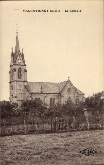 Ak Valentigney Doubs, Le Temple, Kirche, Außenansicht