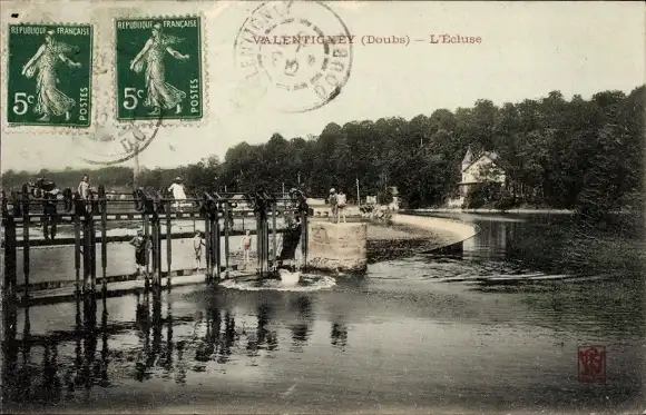 Ansichtskarte, Postkarte, Schleuse, Schleusenkammer, Wehr, Schleuserwärter, Schleusentor