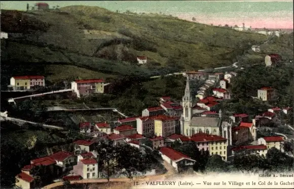 Ak Valfleury Loire, Vue sur Village, Col de la Gachet