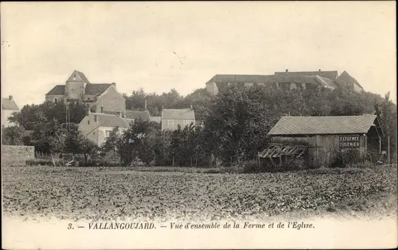 Ak Vallangoujard Val d´Oise, La Ferme et l´Église