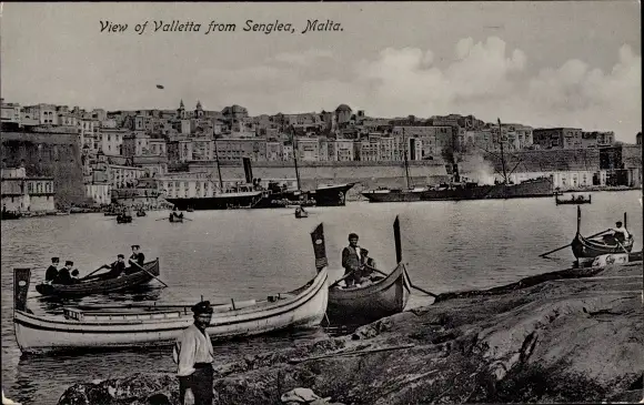 Ak Valletta Malta, View from Senglea, Blick auf den Ort, Ruderboote