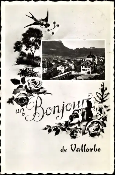 Ak Vallorbe Kanton Waadt, Gesamtansicht, Rosen, Schwalbe