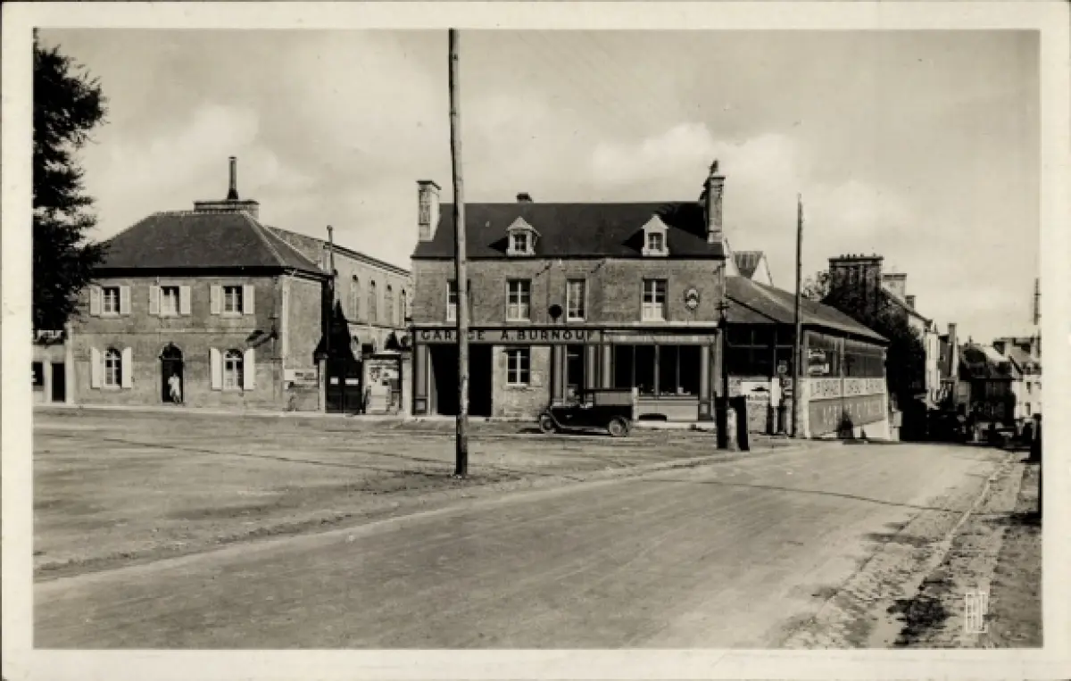 Ak Valognes Manche, GARE A BURNOU, Gebäude, Straße, Oldtimer-Auto