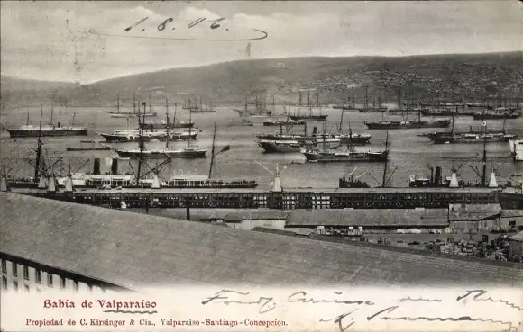 Ak Valparaíso Chile, Bucht, Hafen, Schiffe