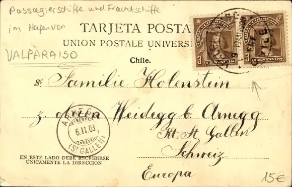 Ak Valparaíso Chile, Hafen, Passagierschiffe und Frachtschiffe