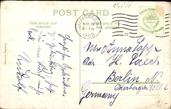 Zustand, siehe Scan, gelaufen, 1908 - ca 14 cm X 9 cm