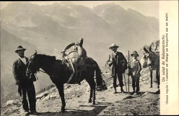 Ak Valsavarenche Aostatal, Chasse royale, Comment on charge un bouquetin sur un mulet