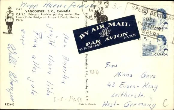 Zustand, siehe Scan, gelaufen, 1968 - ca 14 cm X 9 cm