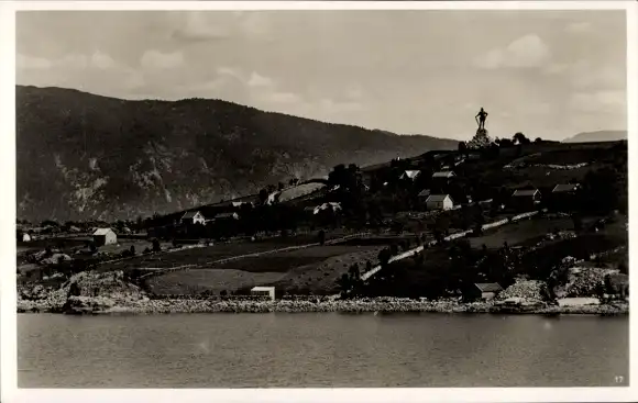 Ak Vangsnes Vik Norwegen, Teilansicht, Frithjofstatue