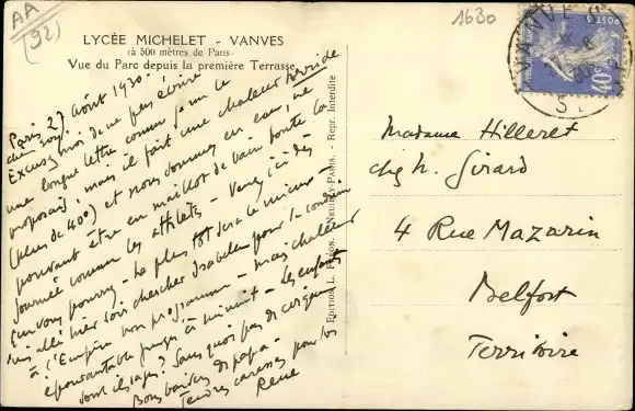 Ak Vanves Hauts de Seine, Lycée Michelet, Vue du Parc depuis la première Terrasse