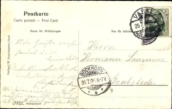 Zustand, siehe Scan, gelaufen, 1906 - ca 5 cm X 3 cm