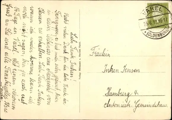 Zustand, siehe Scan, gelaufen, 1932 - ca 11 cm X 15 cm