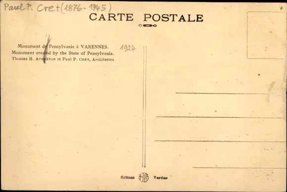 Ak Varennes Meuse, Monument de Pensylvanie, Pennsylvania Monument