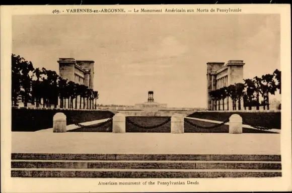 Ak Varennes en Argonne Meuse, Le Monument Americain aux Morts de Pensylvanie