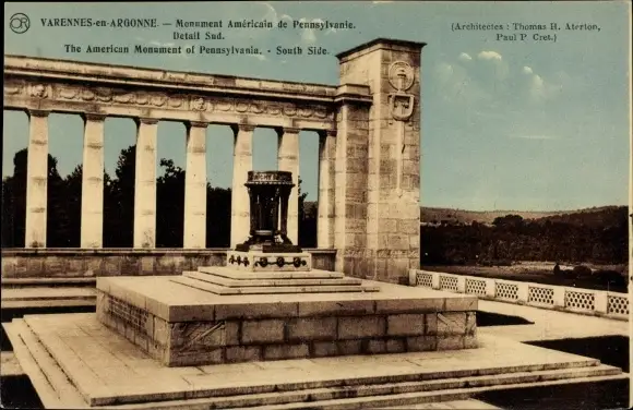 Ak Varennes en Argonne Meuse, Monument Americain de Pennsylvanie, Detail Sud