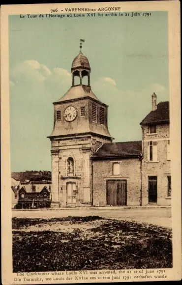 Ak Varennes en Argonne Meuse, Uhrturm