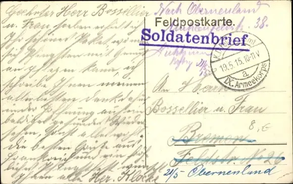 Zustand, siehe Scan, gelaufen, 1915 - ca 14 cm X 9 cm