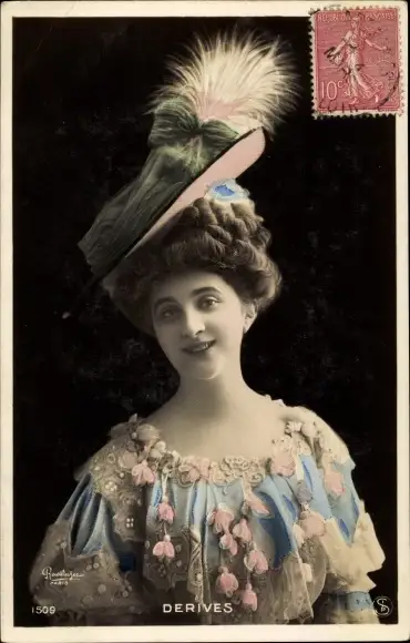 Ak Variete Künstlerin Derives, Portrait mit Hut